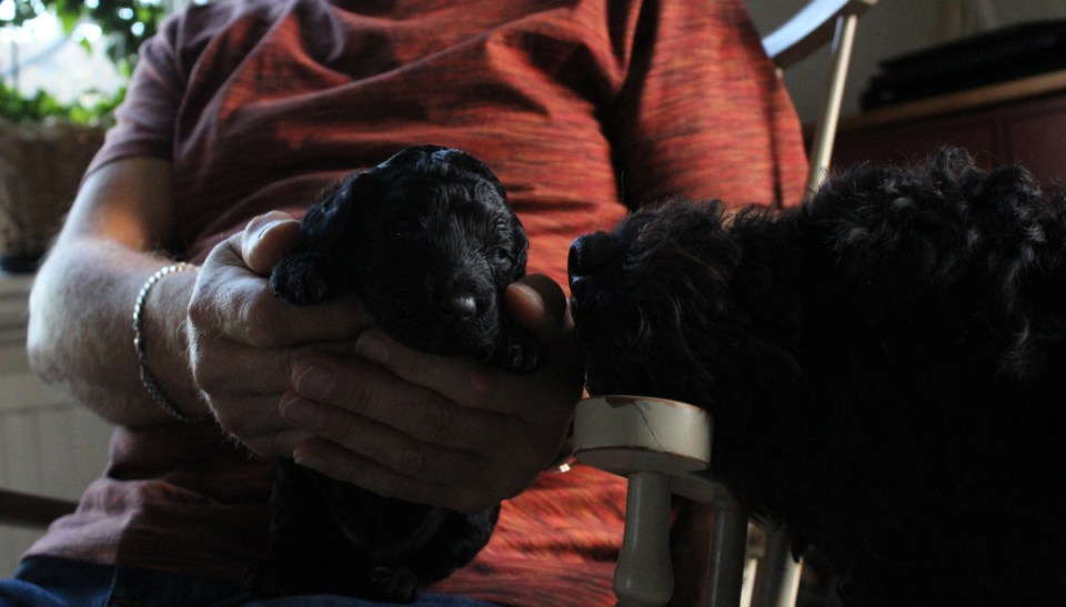 Idag är det dag 15, tillika fredag och fredagsmys med bröderna och husse. Nu har vi haft förmånen att ha dessa guldklimpar hos oss i två veckor och vi njuter varje dag. Valparna växer som tusan och Ester äter tredubbelt jämfört med vanligt, trots det är hon är slank. Valparna knubbar till sig och växer så det knakar varje dag. Idag är dom t.ex tredubbelt så tunga som när dom föddes.