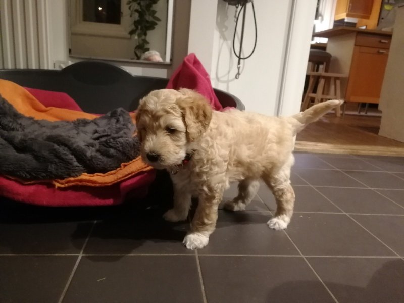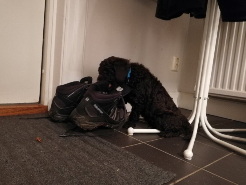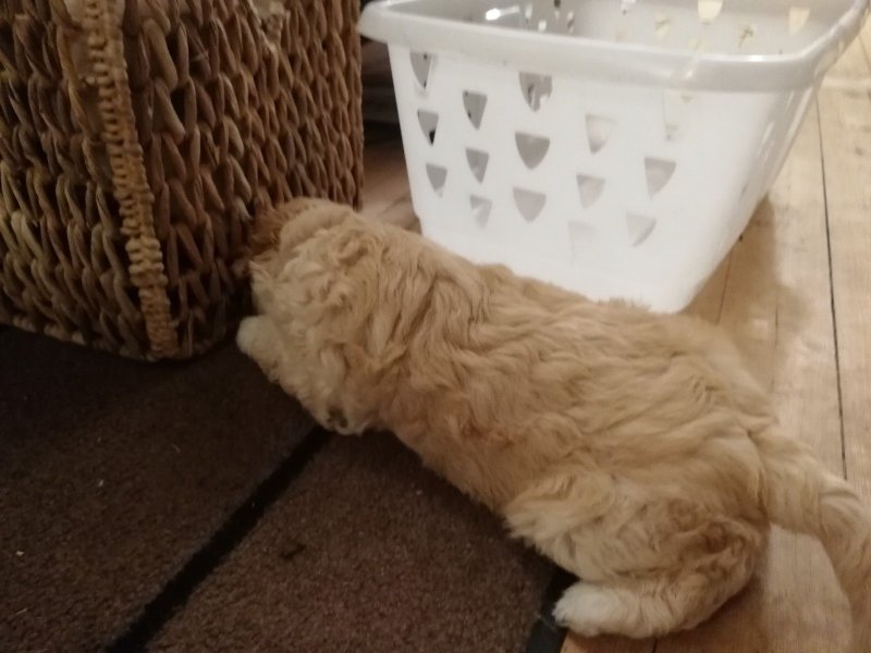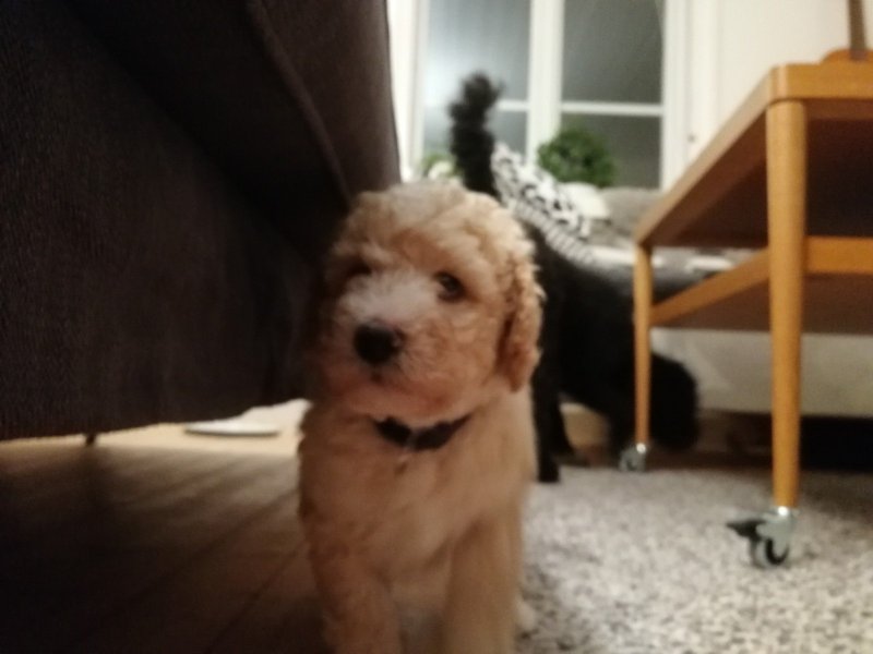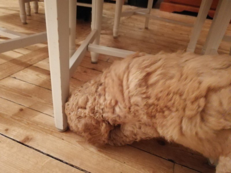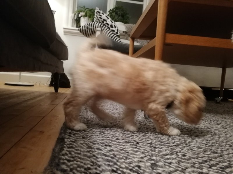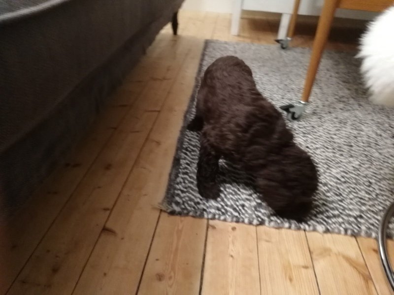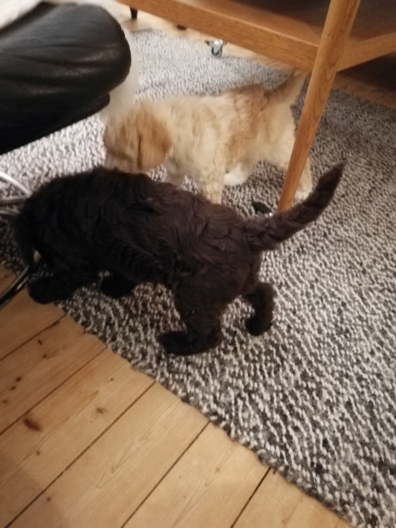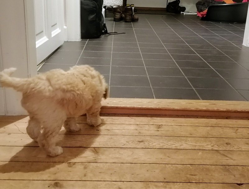 Upptäcktsfärd idag. Nu är valparna vana att springa och försöka rymma i trädgården, men oj vad spännande det var att släppas fria inomhus. Mycket farligt!