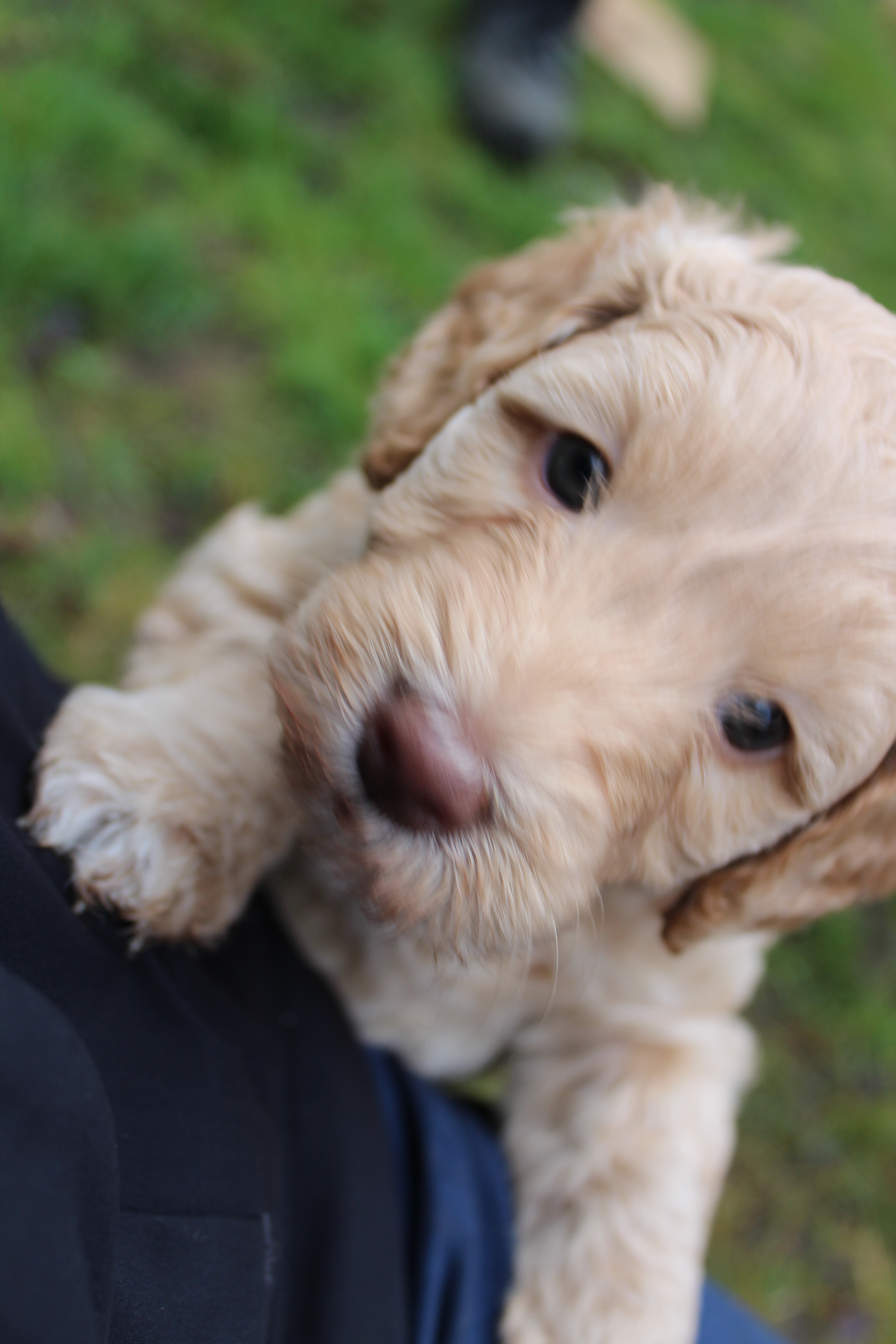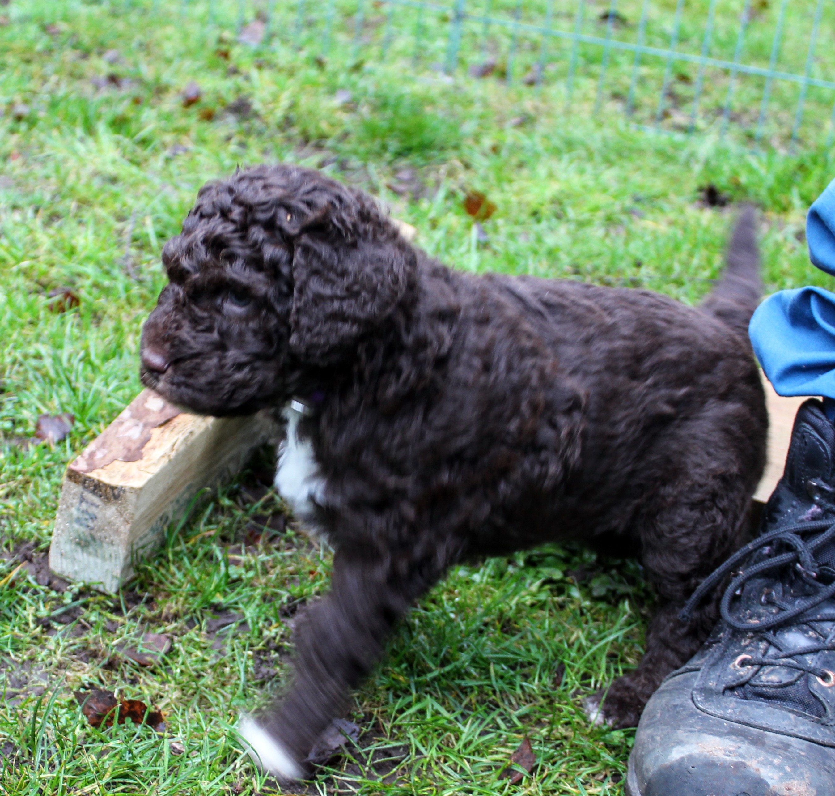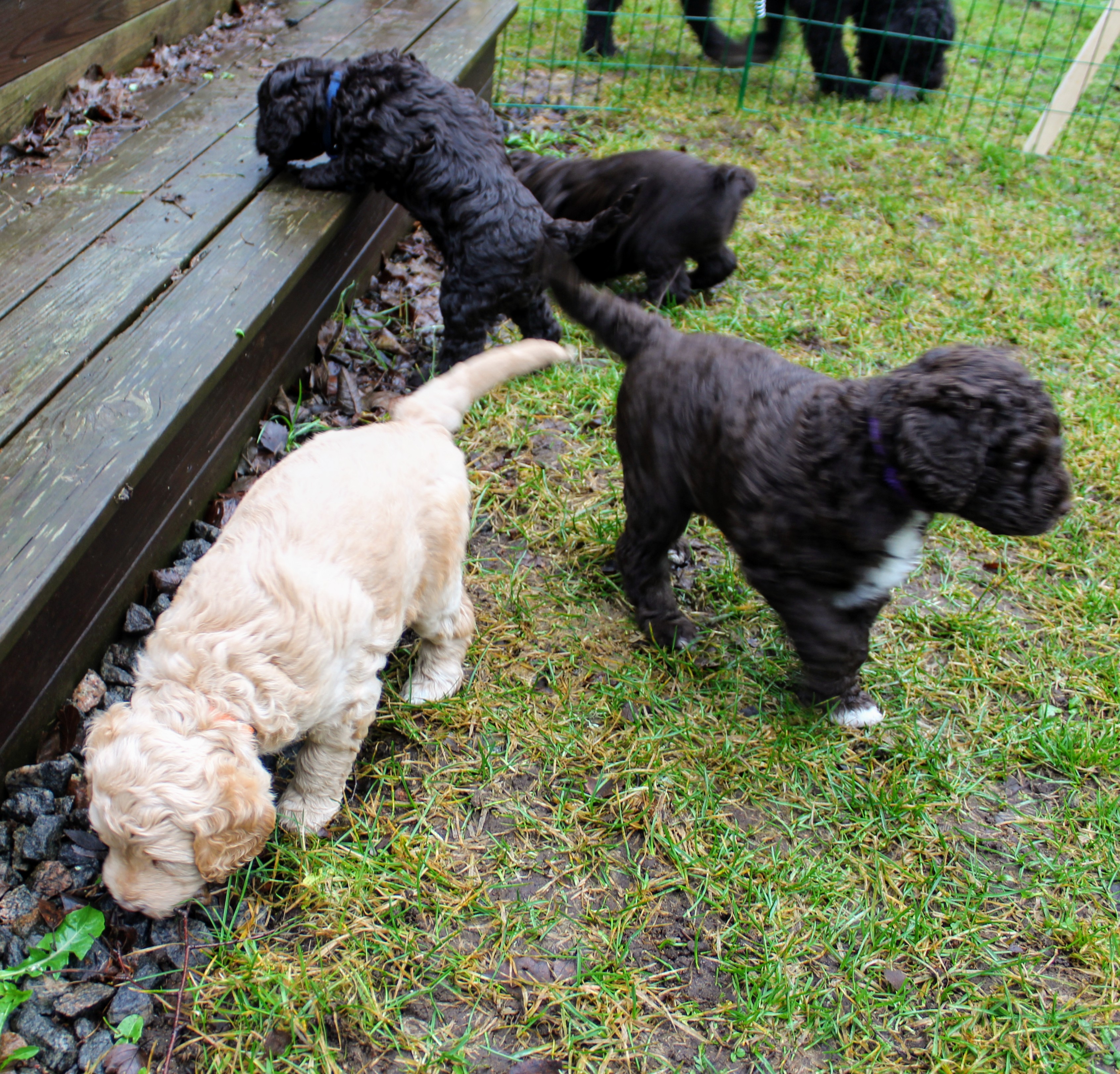 Idag fick vi oväntad hjälp av syster och svåger att bygga valphage ute. Så bra, det tackar vi för! Här kommer några bilder från valparnas första vistelse ute i det fria.