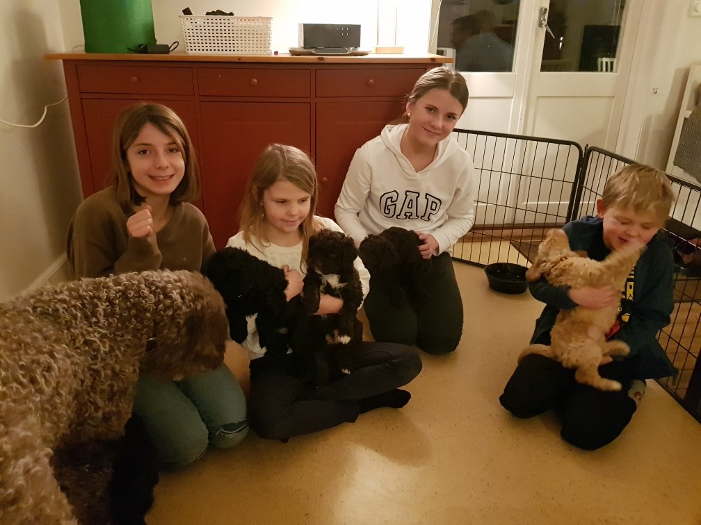 Idag har vi haft besök av Lunas husse och matte. Strax därefter kom lille Rosas nya familj också på besök. De hade kommit överens om ett namn till honom. Så glada vi blev när vi hörde att han ska heta Harry. Det passar honom perfekt. Alla besökare var rörande överens om att valparna växer så det knakar och numera är duktiga på att både springa och hoppa. Det var svårt att skiljas från de små men om bara någon vecka är det dags att flytta hem till sina nya familjer.
