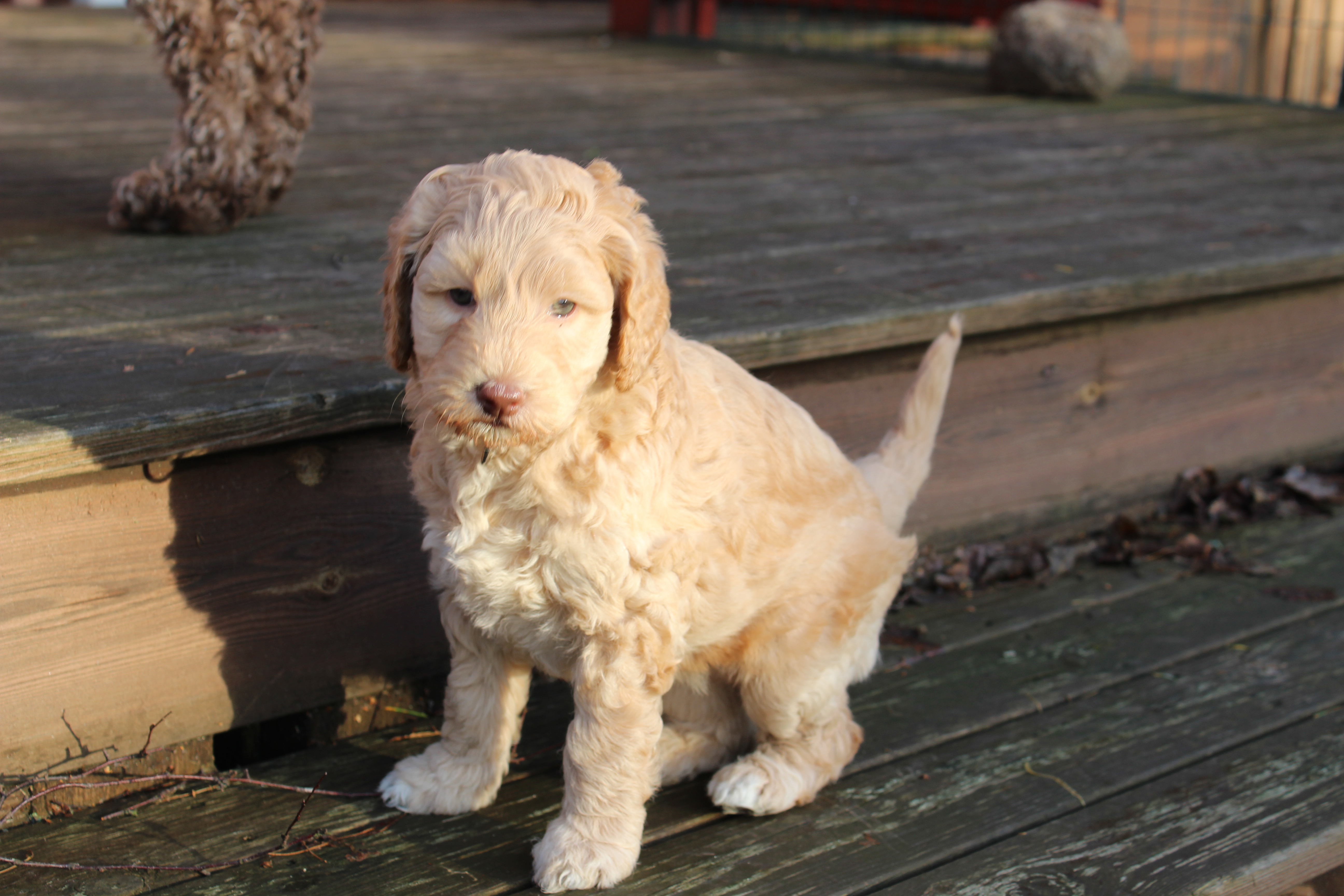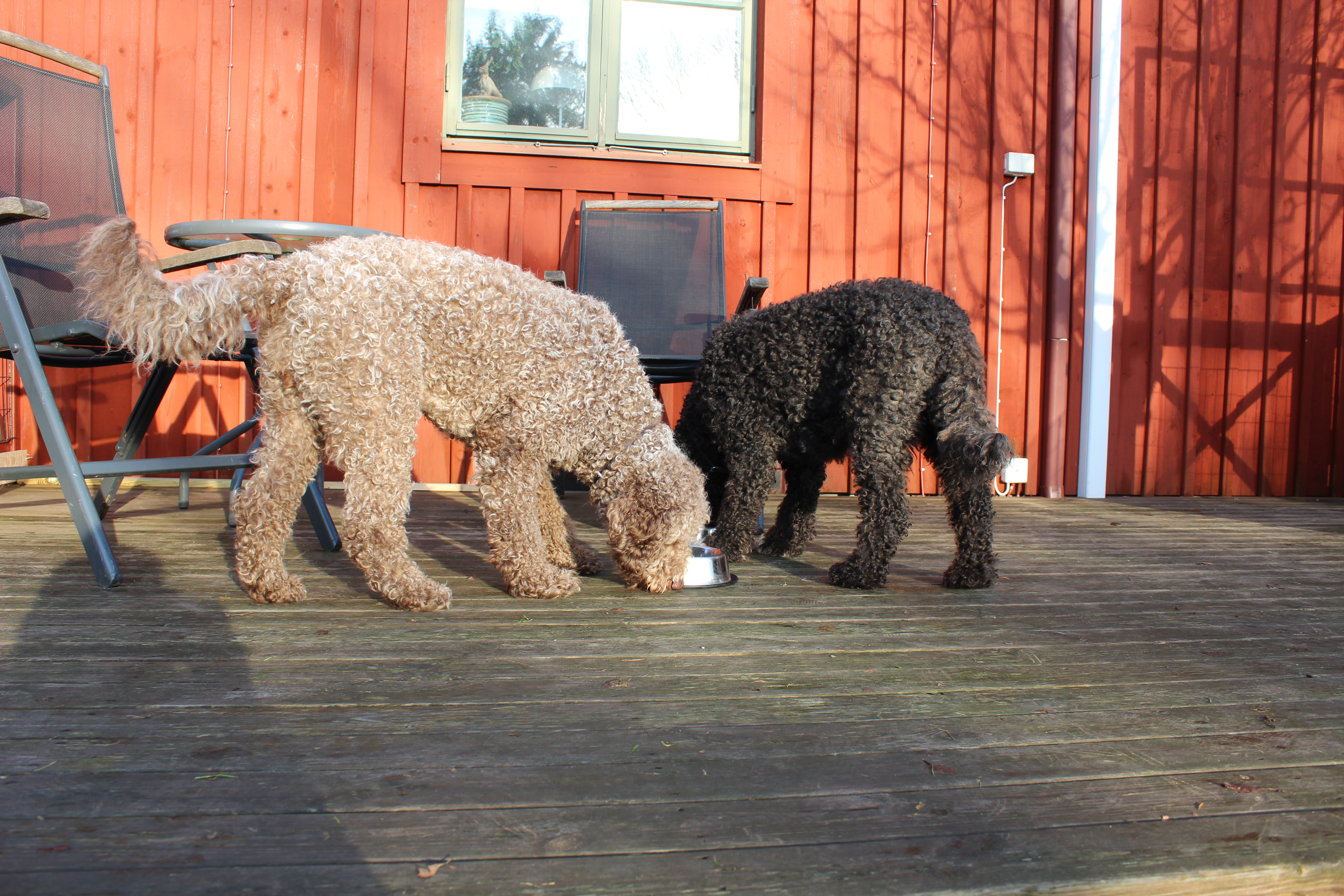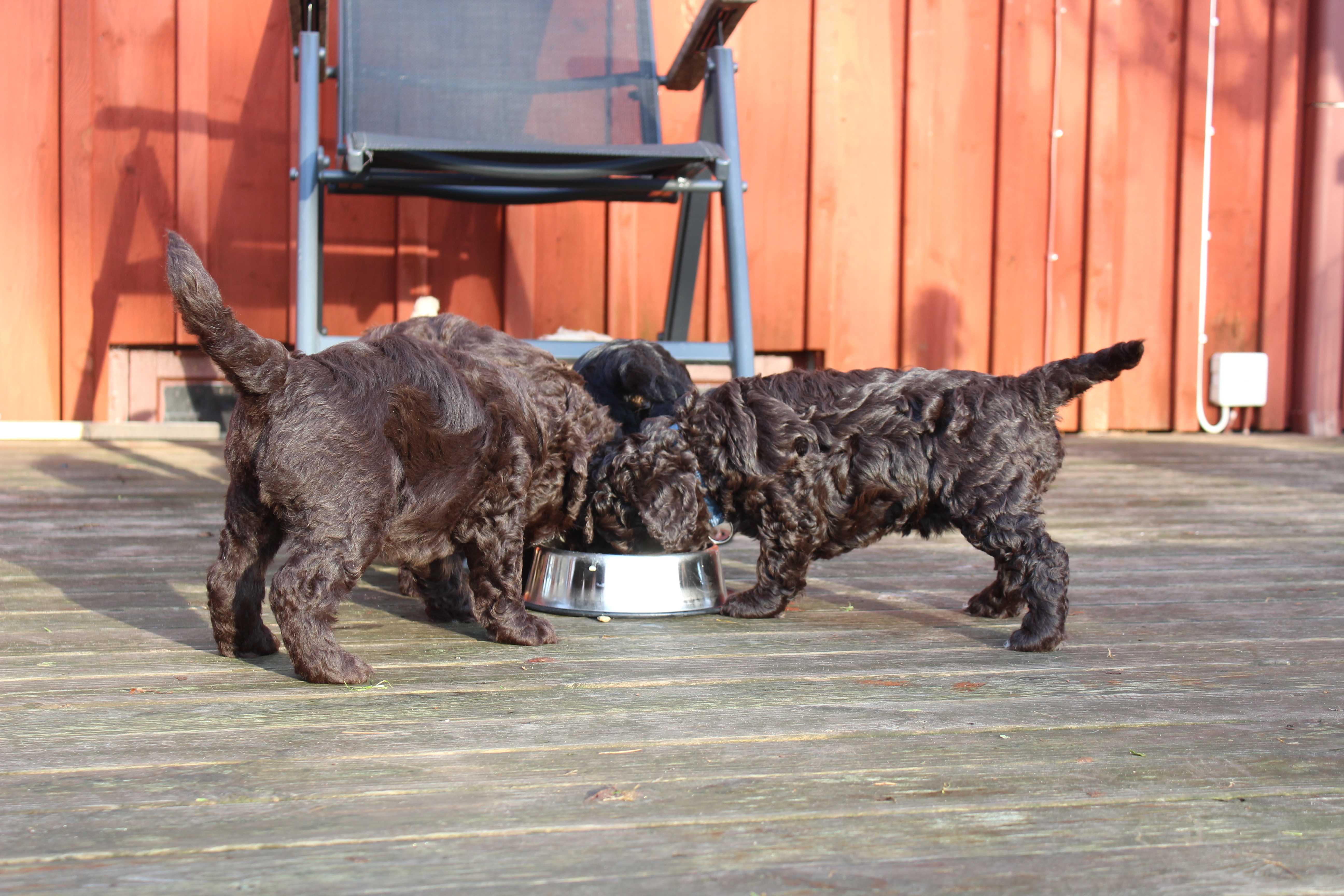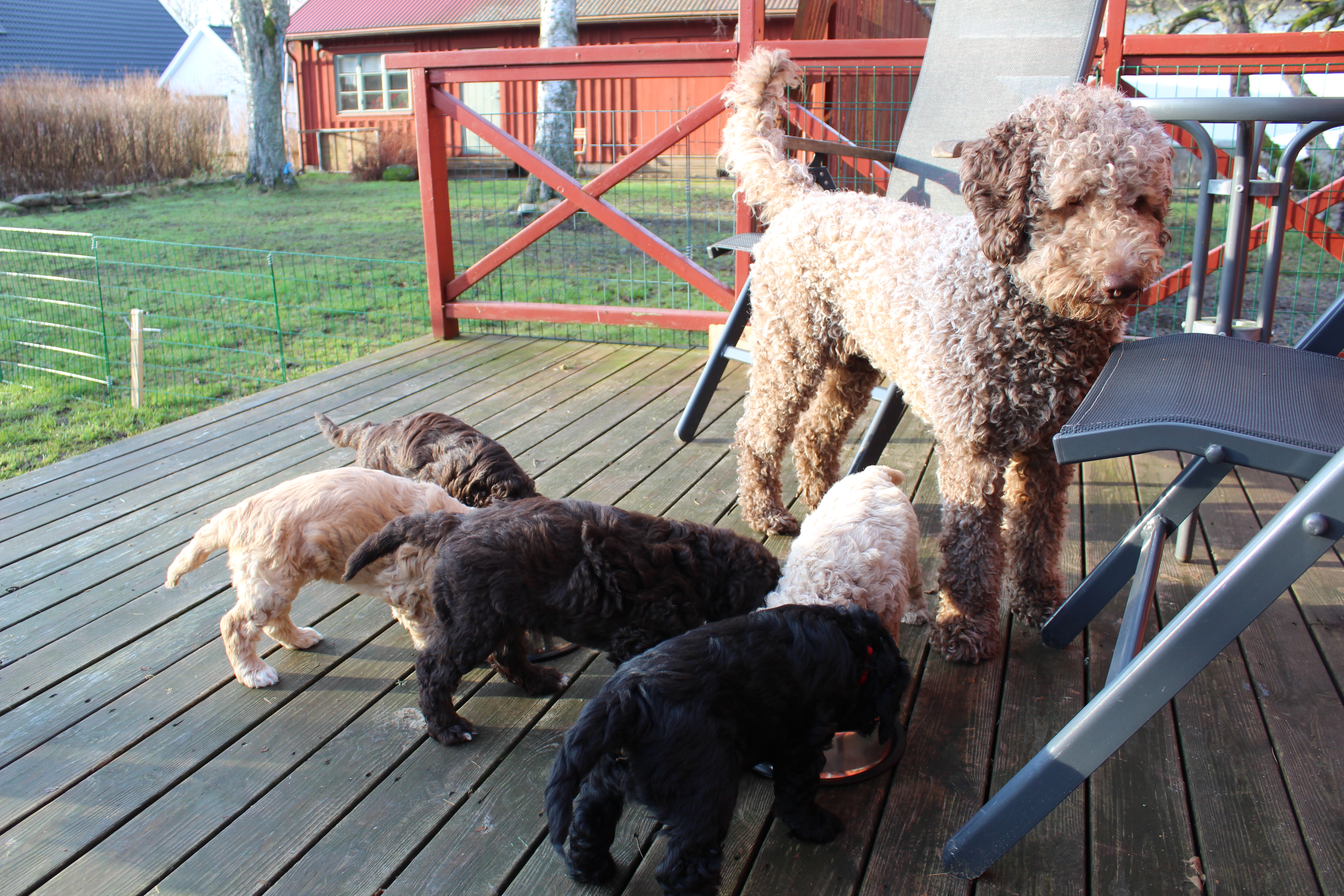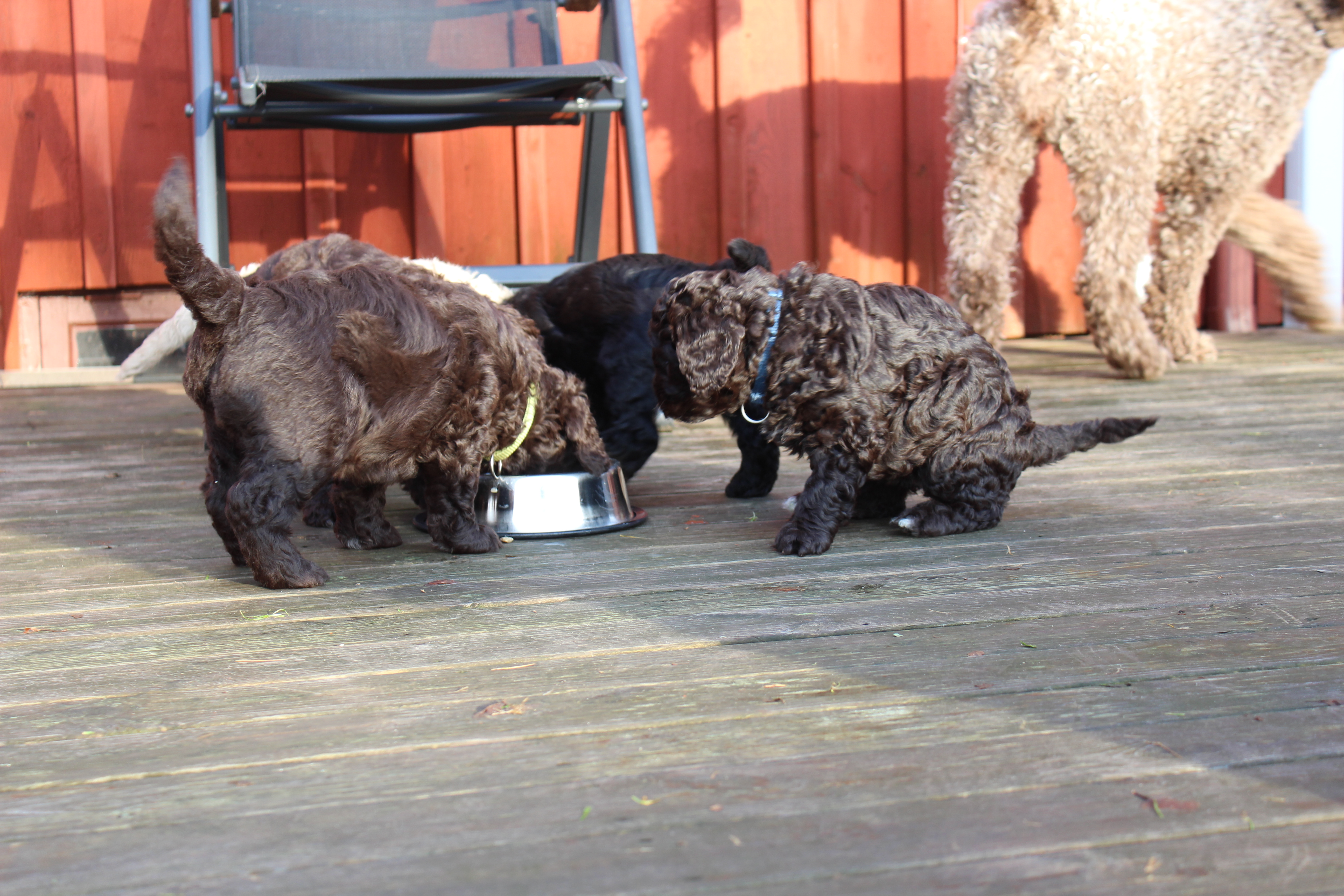 Idag var det andra gången valparna fick komma ut, denna gång med lunchservering. Det uppskattades av alla så mycket att det uppstod en hel del klagan när de skulle in igen.