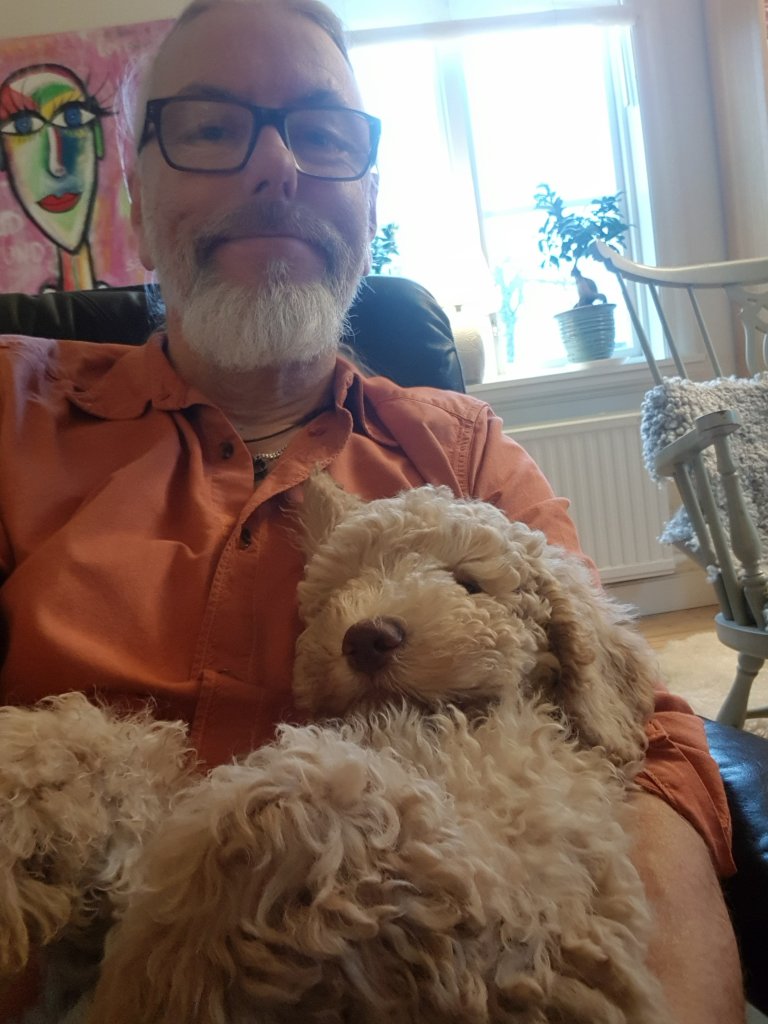 Nu myser vi för sista gången, jag och Harry. Han har blivit en kär medlem i familjen den extra tid han varit hos oss. Snart dags för honom att komma till sin egen familj. Men oj, vad vi kommer sakna honom.