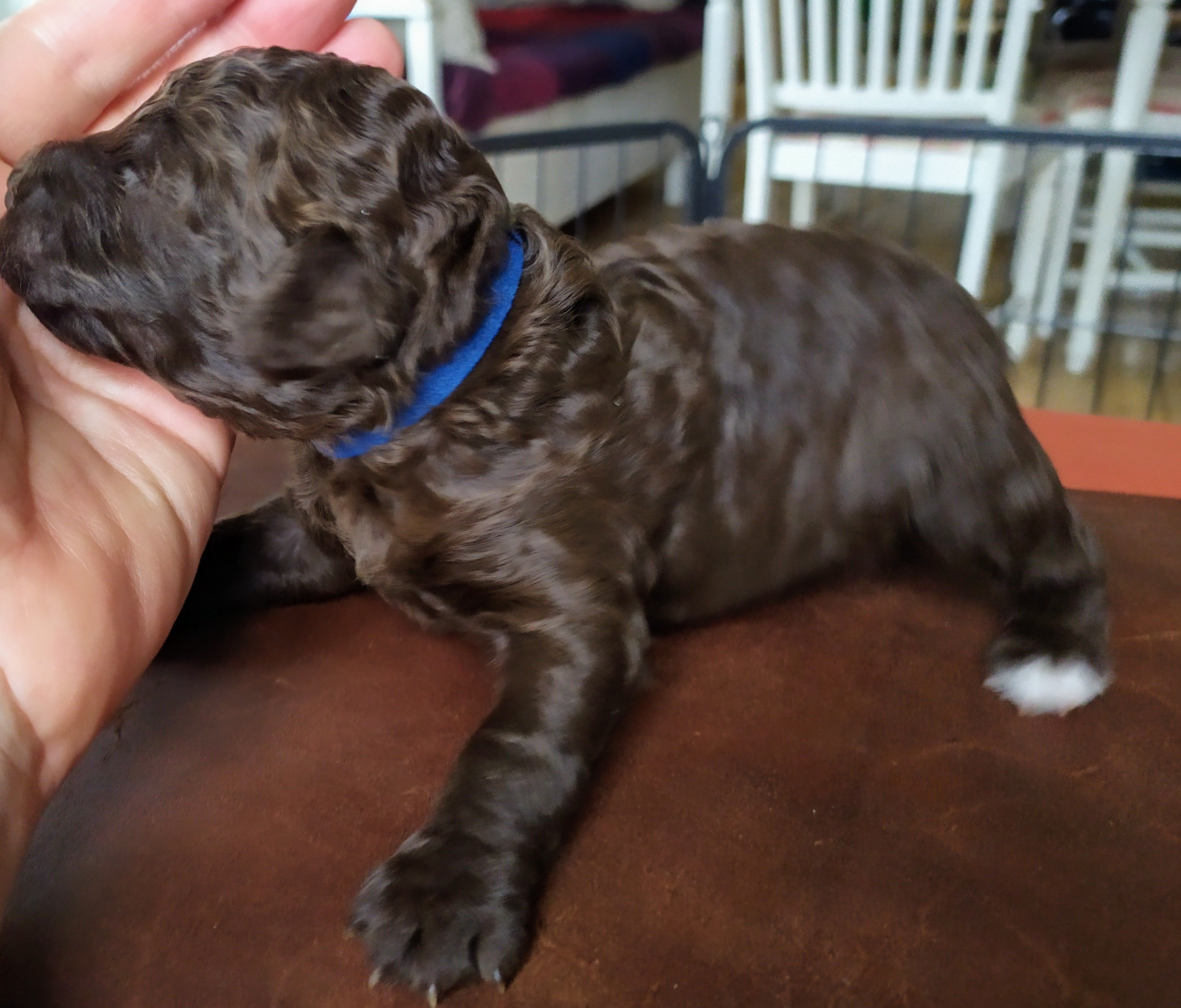 Harry föddes som nummer fyra i kullen kl 20.10 den 28 september. Han vägde 305 g. Idag är han en vecka och har ökat 85% i vikt precis som han ska. Han kommer antingen att förbli brun eller så får han den vackra färgen parchment. Han får troligen ullpäls.