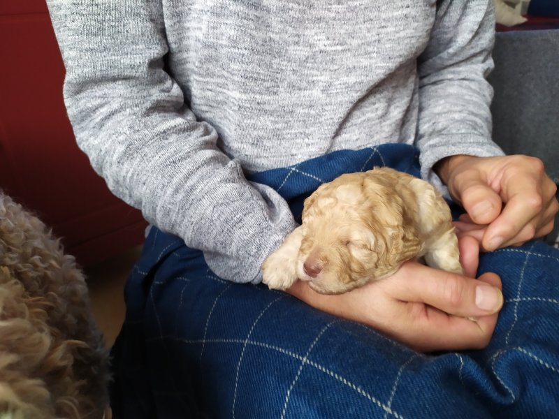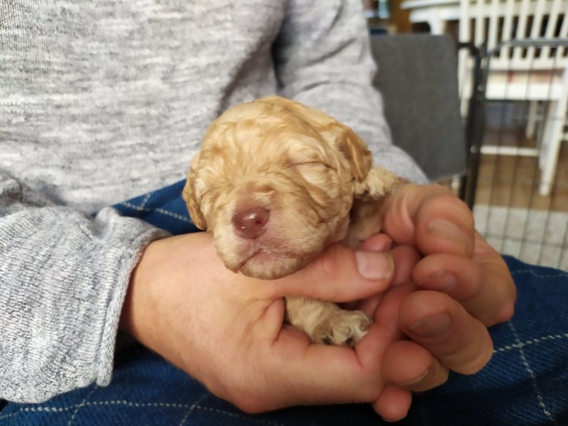 Hon får troligtvis fleecepäls i en aprikos färg.