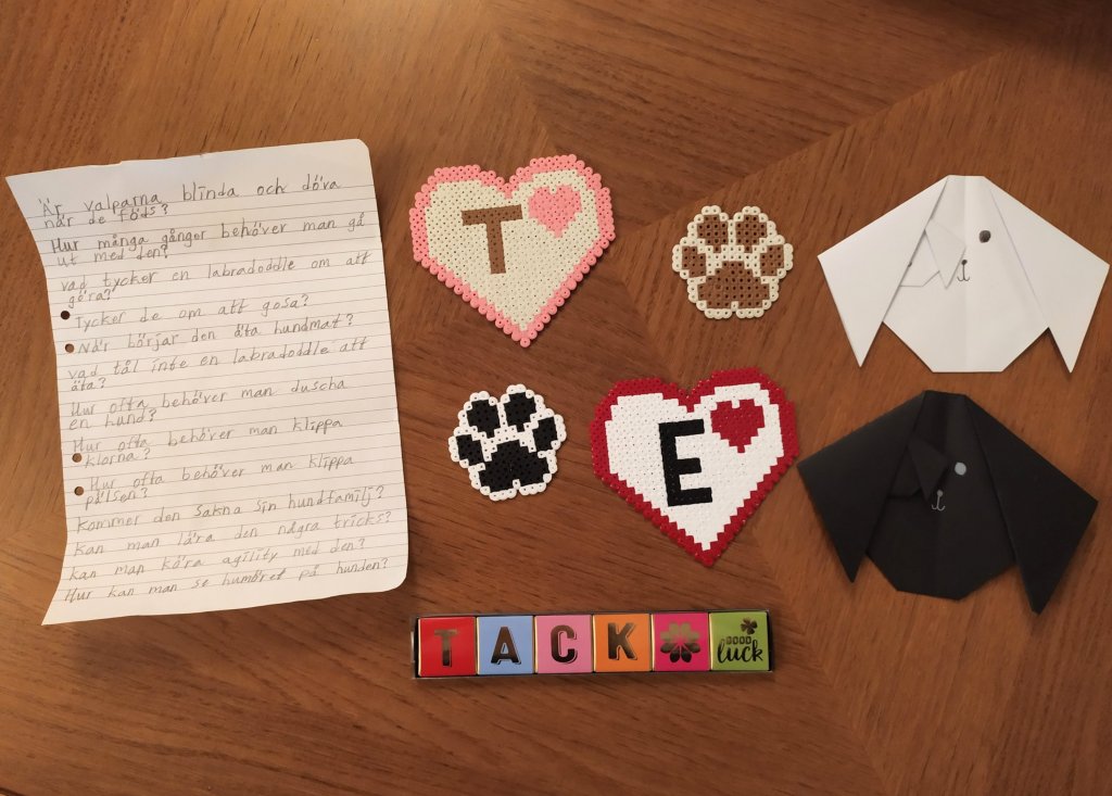 Idag fick vi besök av två tjejer med familj som hade med sig jättefina presenter till Tintin och Ester och en frågelista. Svar på frågorna kommer här i ett senare inlägg. Tack för besöket idag familjen Creutz!