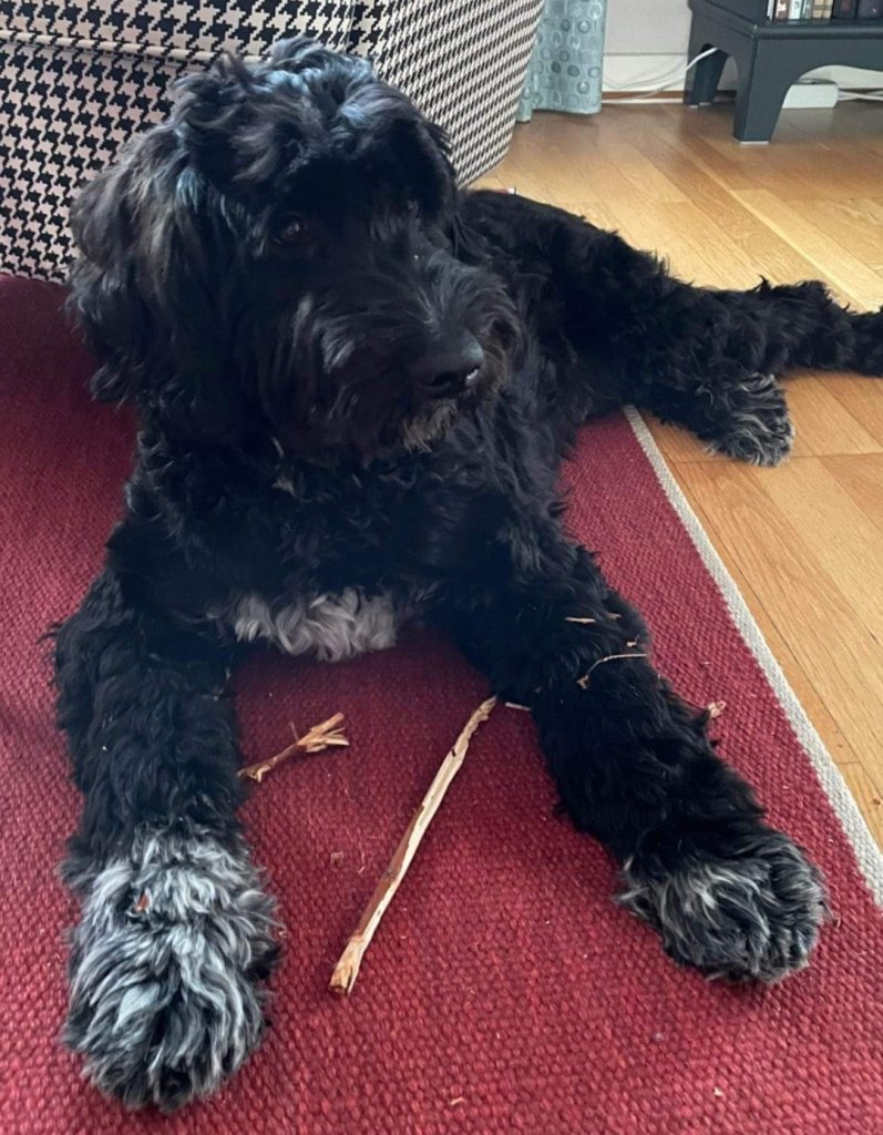 Benji har landat på precis över 17 kg och är knappt 50 över manken. Magisk päls! Silkesmjuk, kolsvart som skimrar i brunt vid ansiktet, ljuvliga lockar. 😍