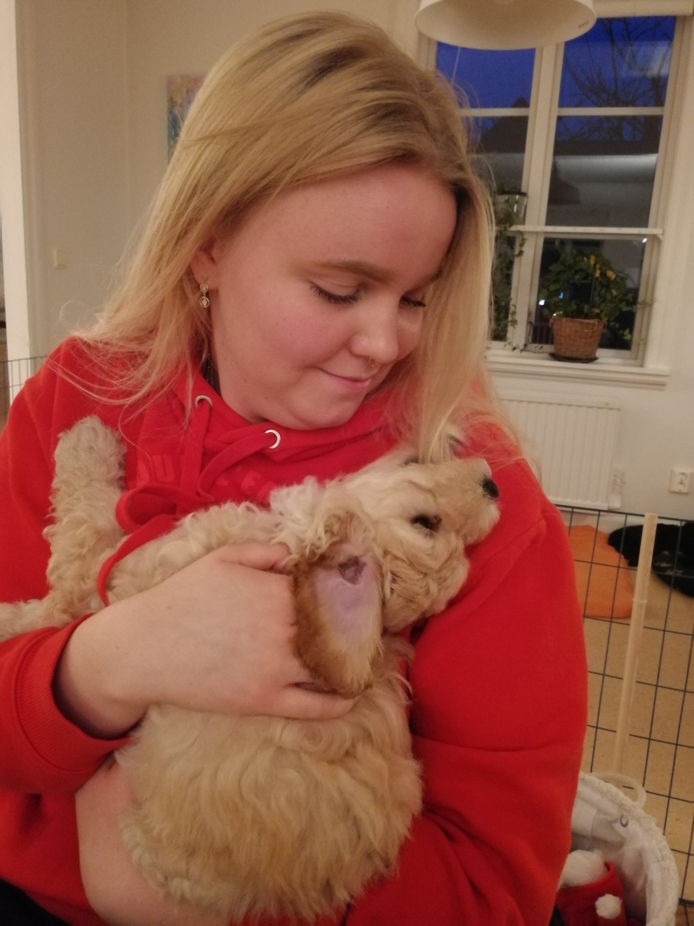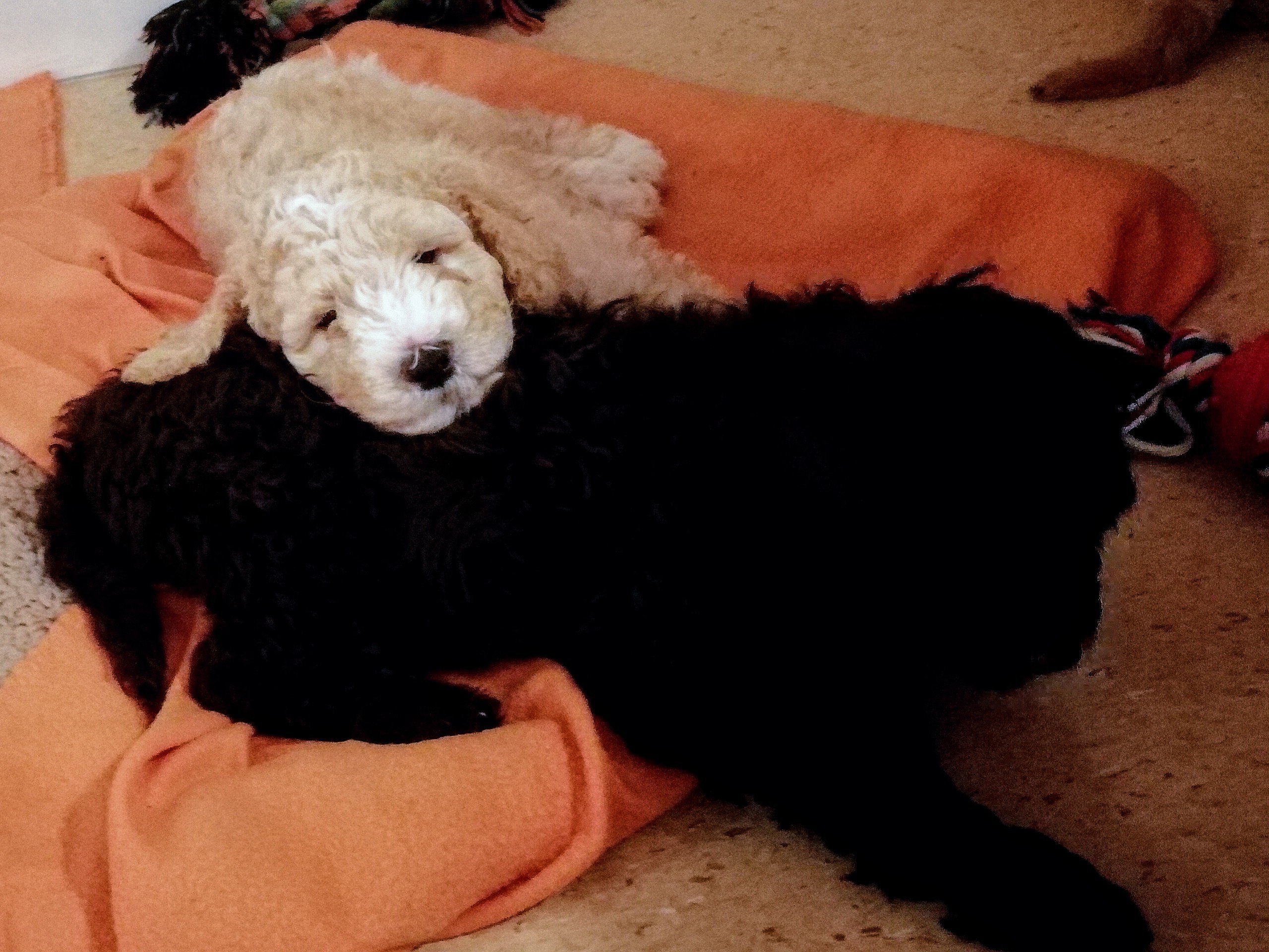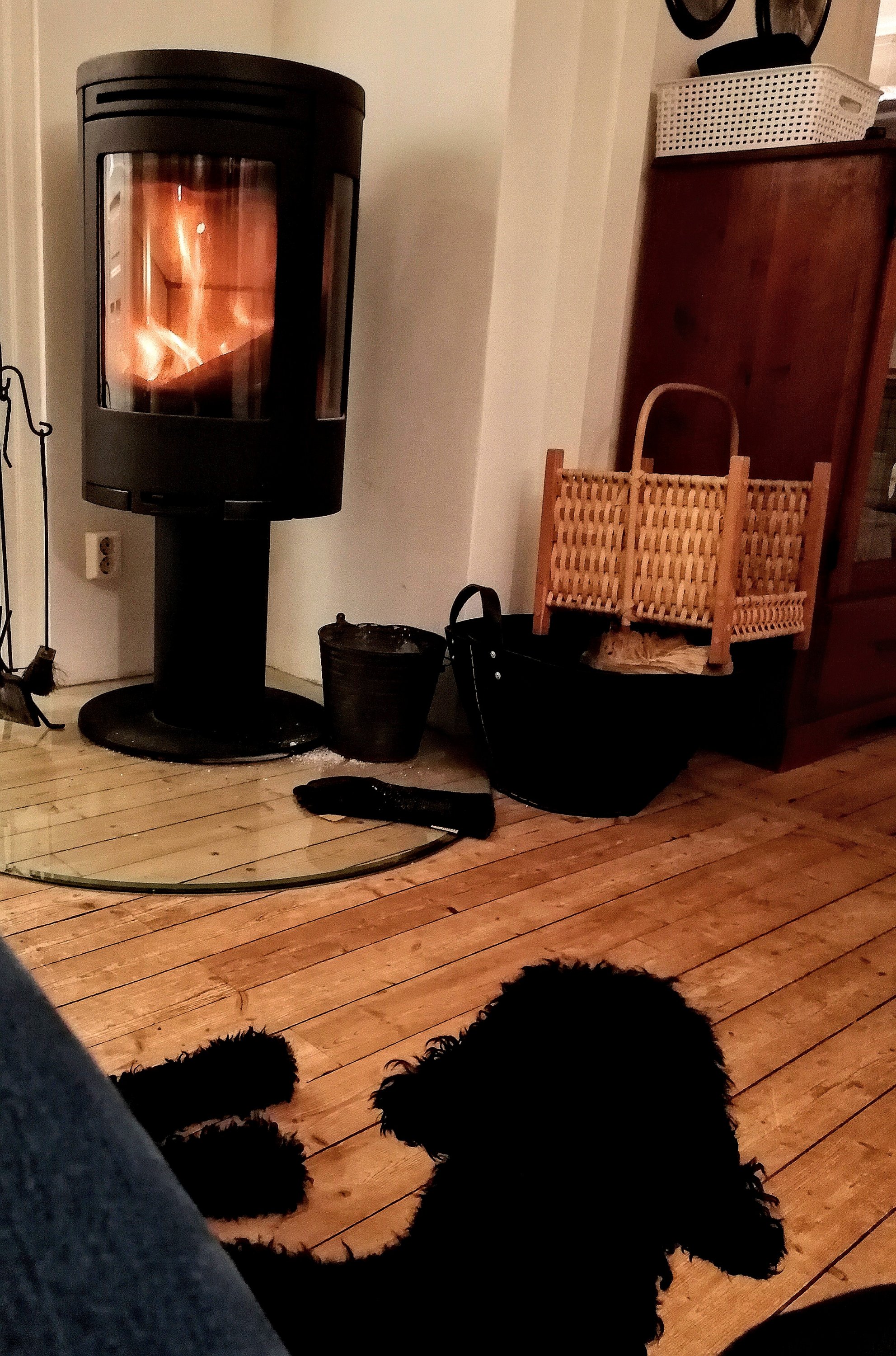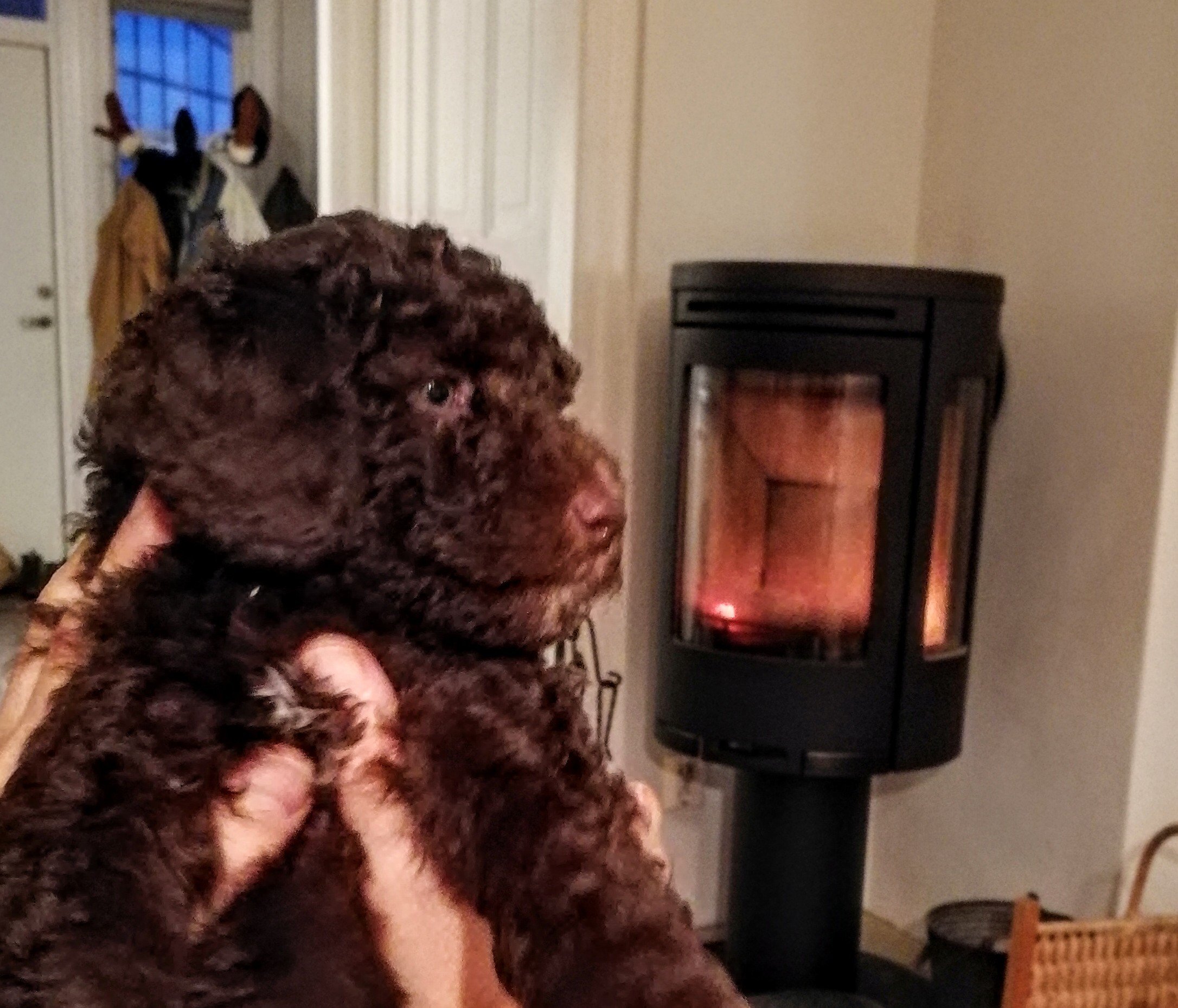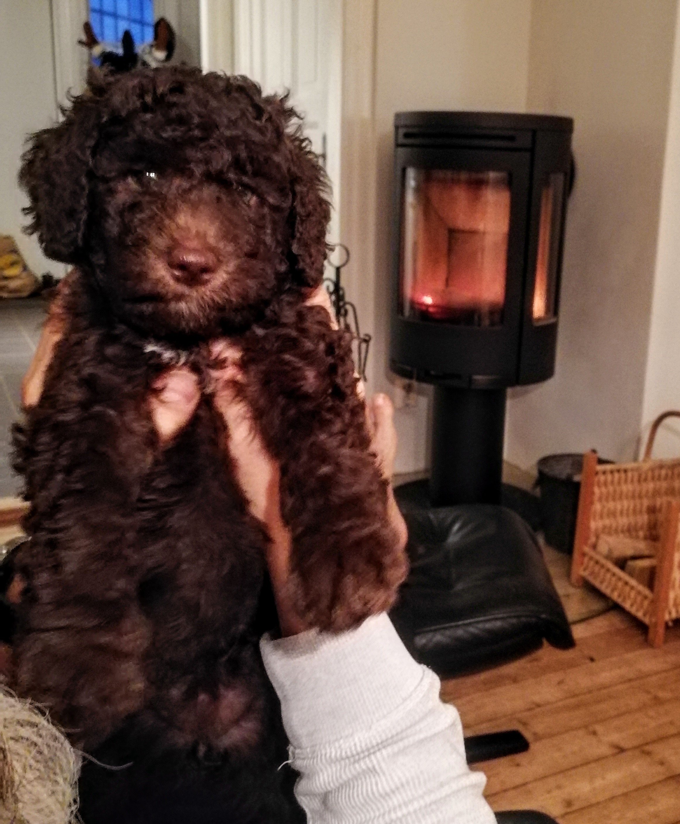 Efter den traumatiska upplevelsen fann sig valparna i morsans tilldelade hallkorg. Där föll de så småningom i sömn och huset blev åter tyst och lugnt.