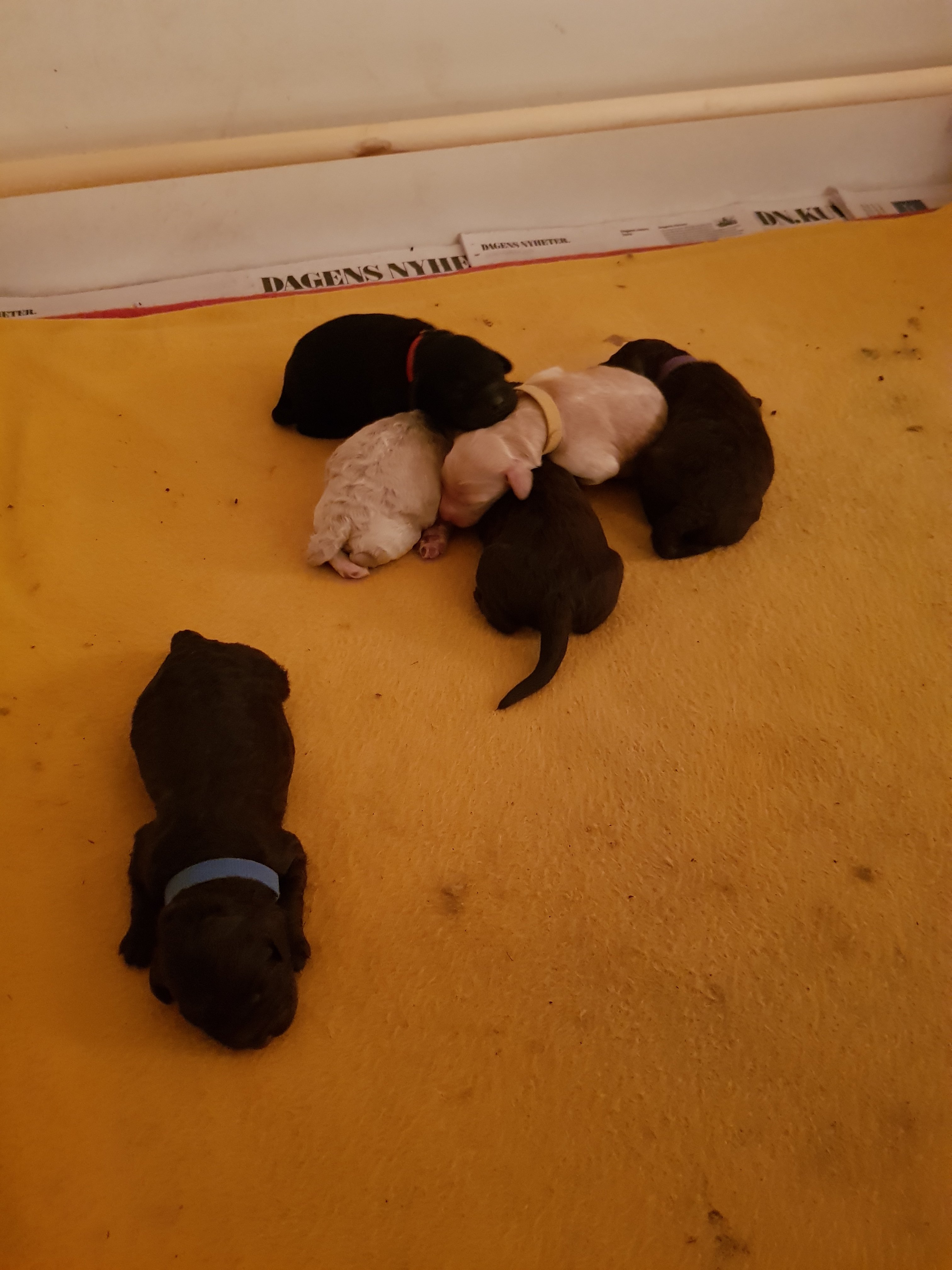 Livet går sin gilla gång i valplådan. Kontroll och vägning varje morgon för att se till att alla valparna mår väl och utvecklas som de ska. De är redan små personligheter med ett eget temperament. Nästa stora steg, när de öppnar ögonen, är ännu en vecka bort. Vi är lyckligt lottade som får följa dessa små liv varje dag.