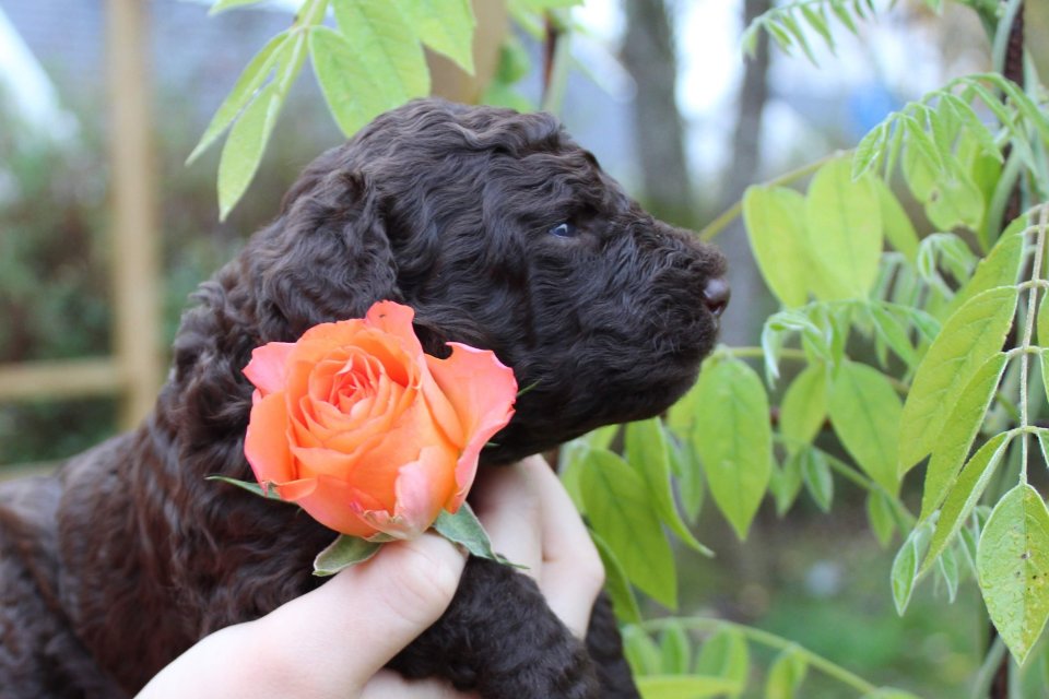 4. Vi bokar ett teamsmöte. Om det känns bra från båda håll ges möjlighet att tinga valp mot handpenning (15% av köpesumman). Detta sker när valpen är två till tre veckor gammal. Vi tilldelar på individnivå först när valparna är besiktigade. Det sker när de är drygt sju veckor gamla.